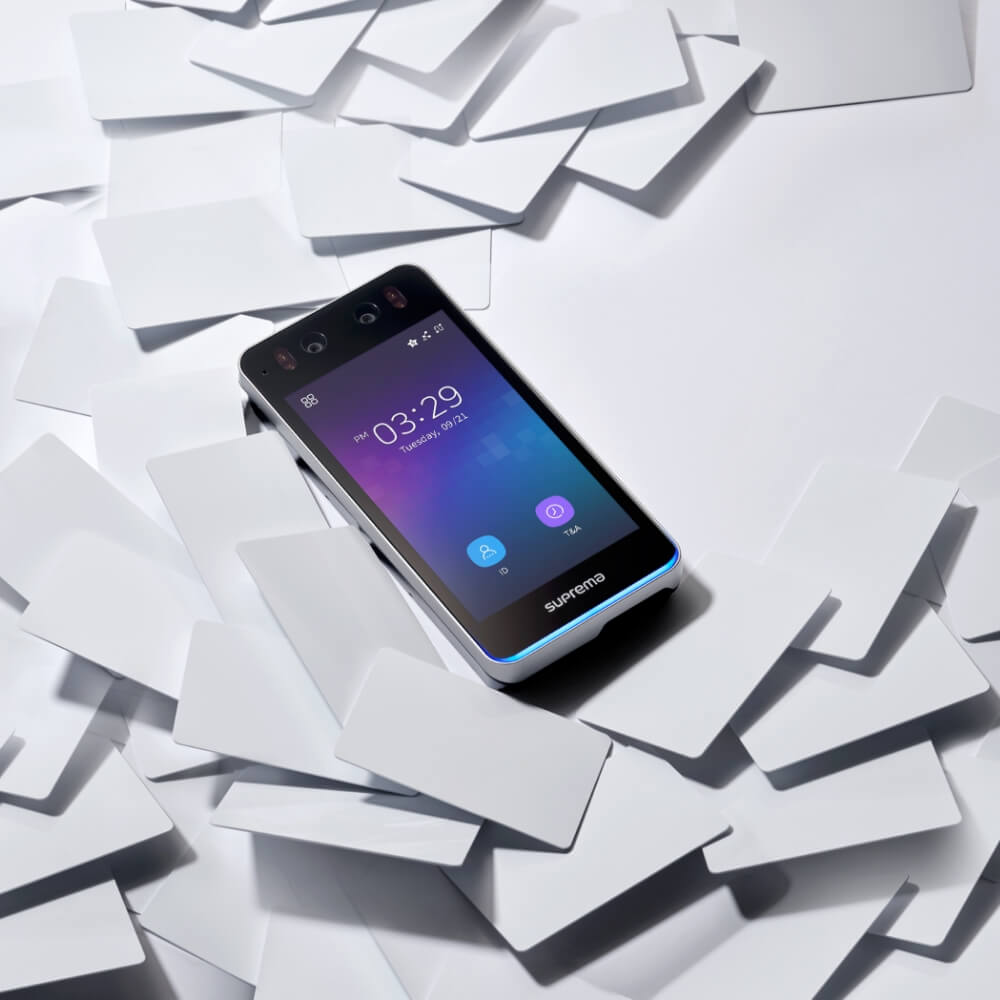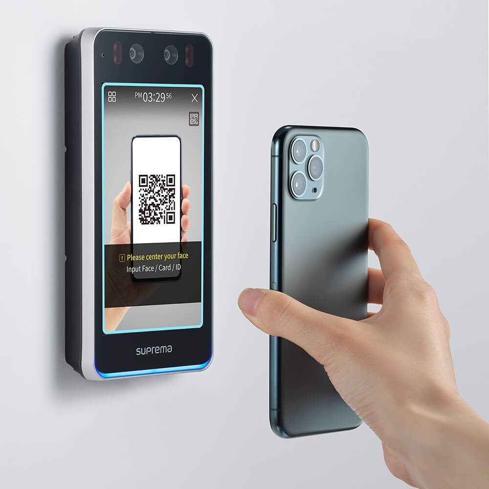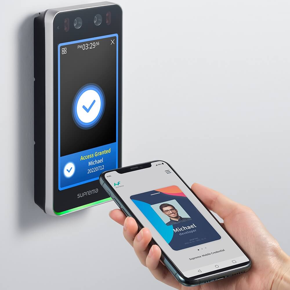 O dispositivo é totalmente compatível com a plataforma BioStar 2, permitindo integração via API (BioStar SDK) e webhooks. Suporta plenamente o Suprema Mobile Access, transformando smartphones em credenciais seguras via BLE e NFC.