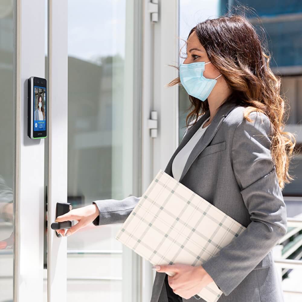 Sim, possui detecção de rosto falso baseada em IA (Anti-Spoofing) para prevenir tentativas de fraude com fotos ou máscaras. Além disso, é projetado com conformidade robusta com regulamentações de privacidade de dados como o GDPR, com recursos como a criptografia de dados biométricos.