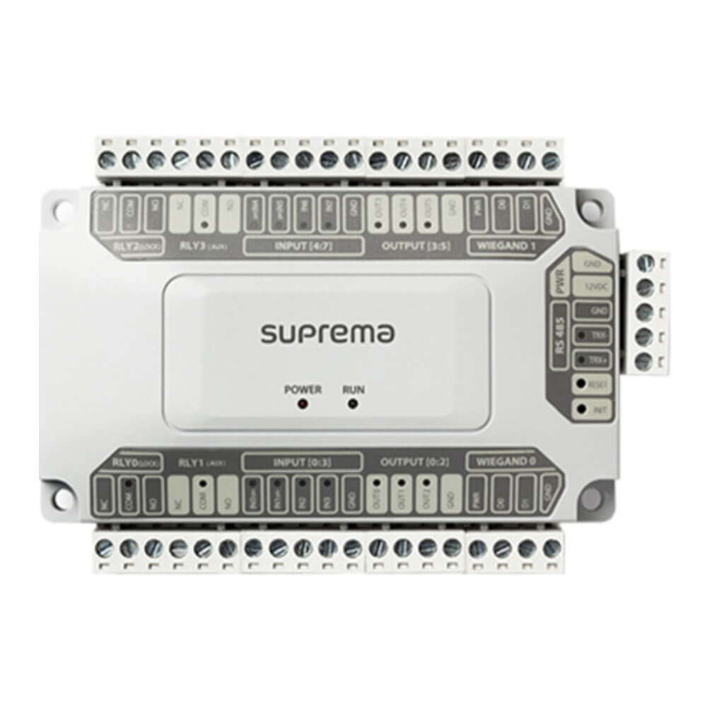 | Descrição geral | Controle seguro de até 4 portas por comunicação criptografada; inclui 2 interfaces Wiegand para leitores de terceiros; suporta sistema centralizado com até 32 portas e 8 dispositivos biométricos em cadeia. |